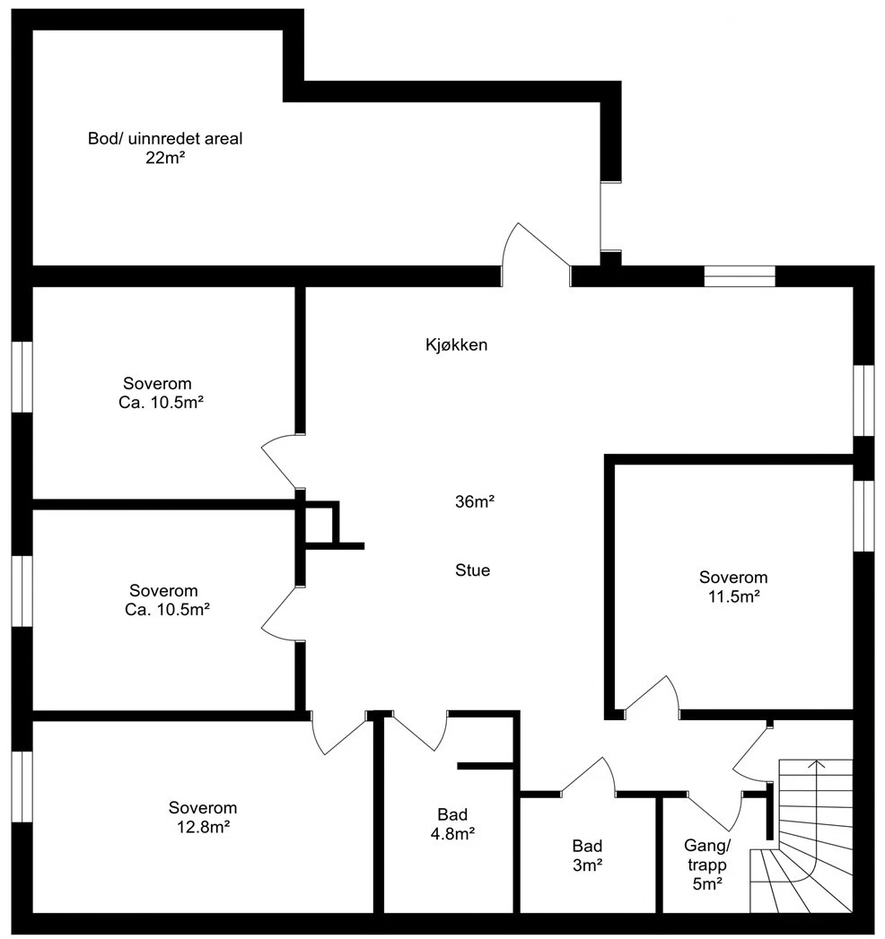 Med totalt fire soverom er dette en ideell bolig for en gruppe venner som ønsker å bo sammen, eller for individuelle studenter som ønsker å bli en del av et sosialt kollektiv. De to badene gjør morgener og kvelder enklere å koordinere, selv i en travel hverdag.
